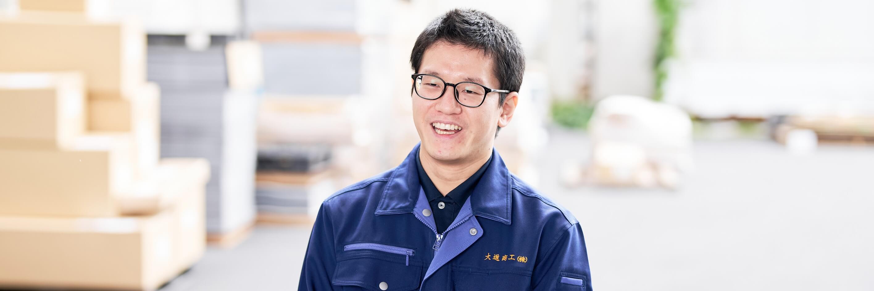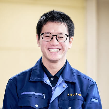 私は、製造業はもちろん民間企業への就職も初めての経験でしたが、大進商工には手厚いサポート体制があるため、安心して働き始めることができました。また実際に業務を進めて行く中でも、困難なことがあれば必ず周囲の人たちが助けてくれます。そうした助け合いの精神や文化が根付いているので、新しい環境に飛び込むことに不安を感じている方にこそ、おすすめしたい会社と言えます。私自身もこれからどんどん成長していきたいと思っていますので、共に頑張っていける仲間になってくれるとうれしいです。